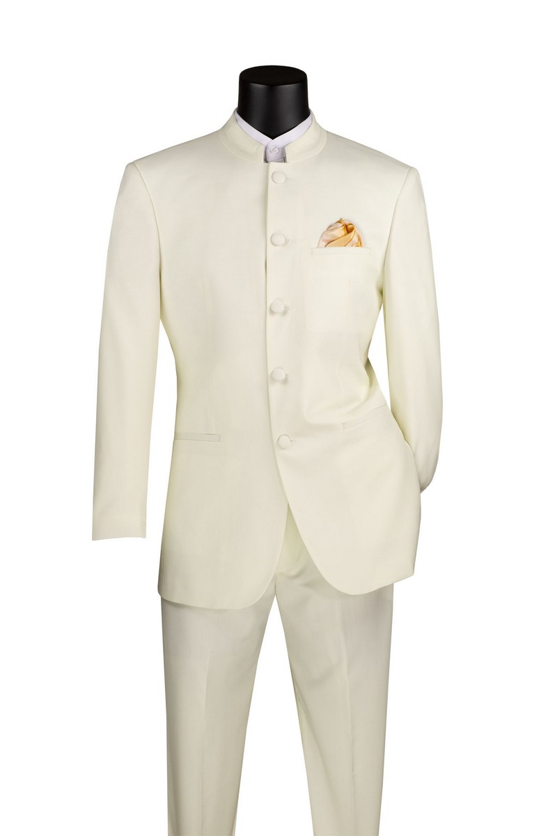 Vinci Philosophy-5 Buttons Suit Banded Collar Regular Fit Suit Burgundy Ivory White Navy Style 5HT