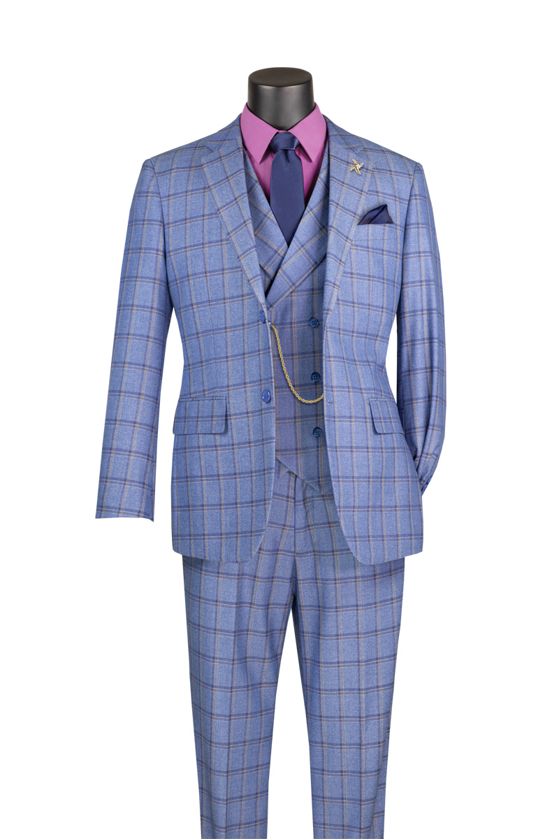 Vinci Philosophy-Modern Fit 3 pcs Windowpane Suit Notch Lapel Fancy Vest Style MV2W-4