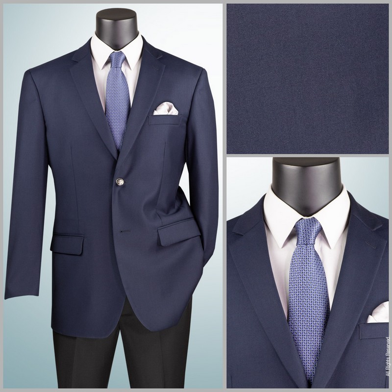 Single breasted 2 buttons, classic notch lapel sport coat, center vent, pure solid.