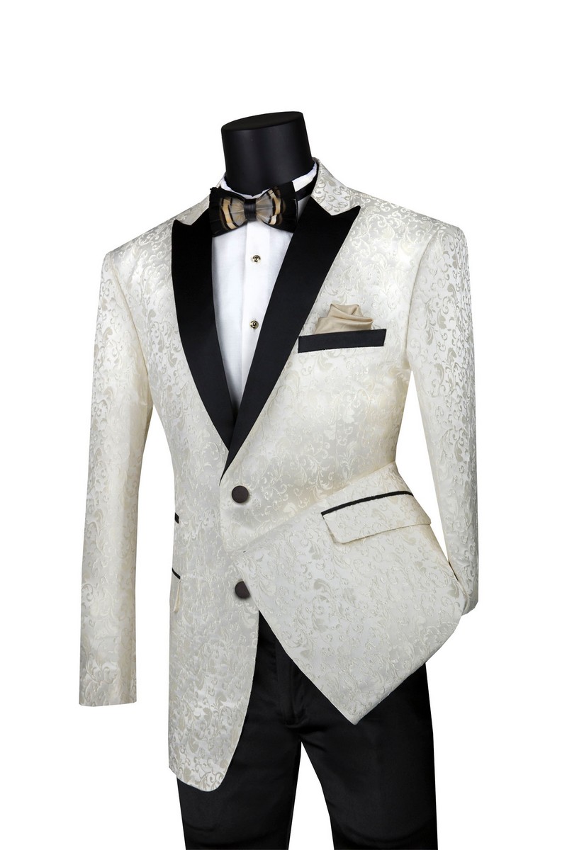 Single breasted 2 buttons, satin lapel regular fit sport coat, side vents, fancy pattern.