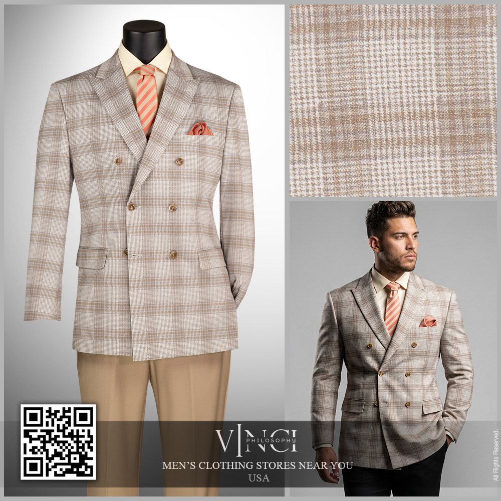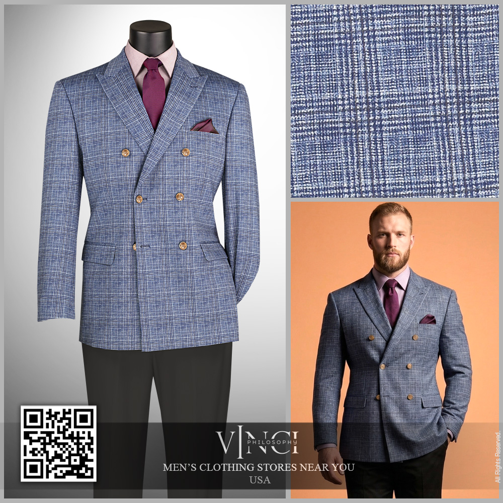Double breasted 6 buttons, regular fit stretch jacket, side vents. Stretch lining and. Complimentary lapel pin.