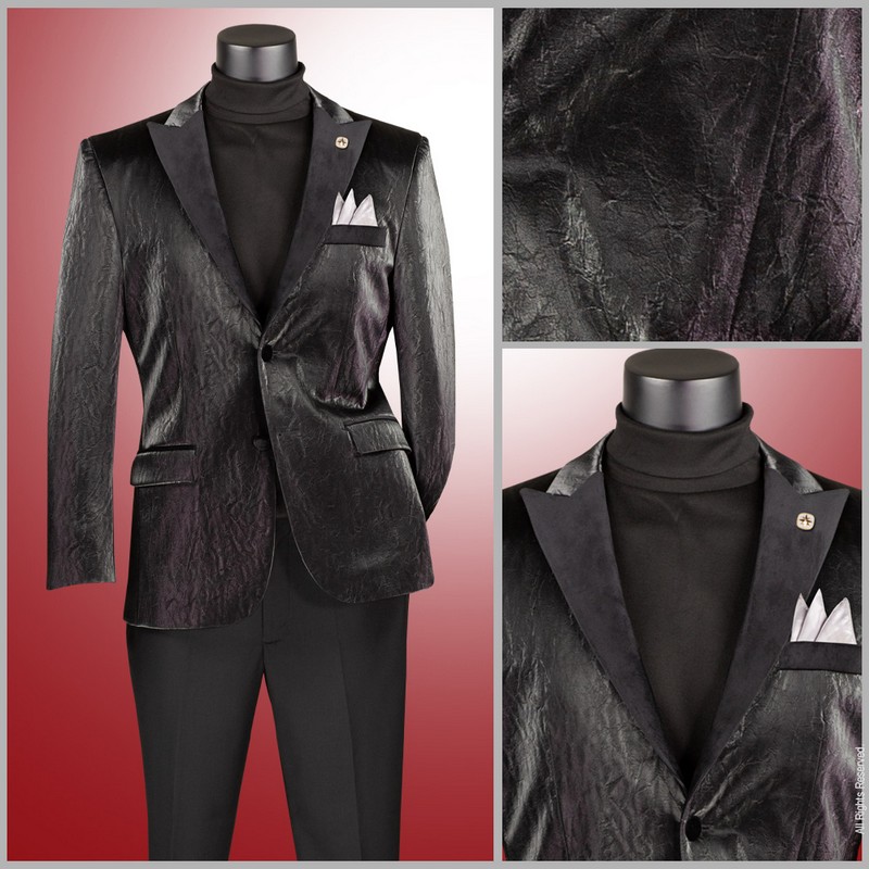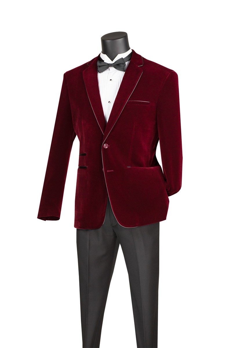 Single breasted 2 buttons, modern fit jacket textured pattern with velvet notch lapel, side vents.